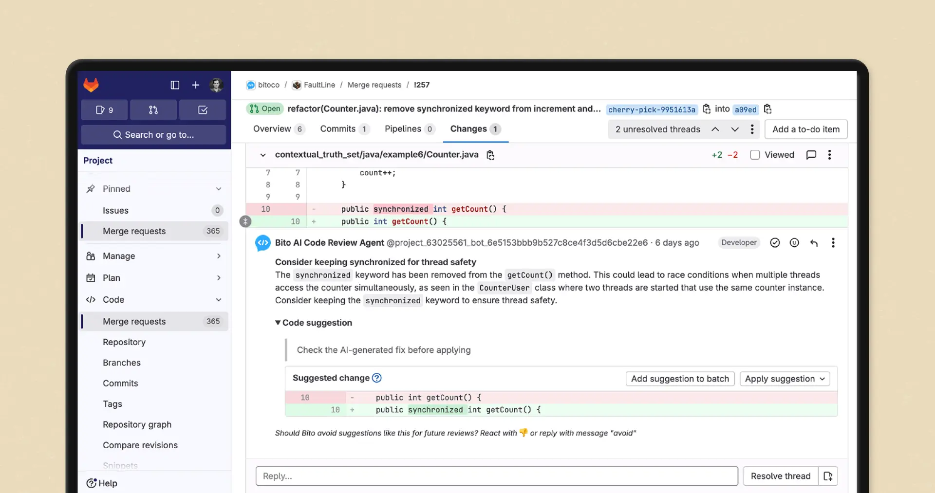 Thanks to Anthropic's developer-friendly infrastructure, the implementation process was smooth. Goel explained, "Integrating Claude in Bito Wingman was seamless due to Anthropic's well-structured API and documentation. The extended context window enabled Bito’s AI Code Review Agent and Wingman to analyze entire code files and complex pull request diffs, providing detailed suggestions and architectural insights."