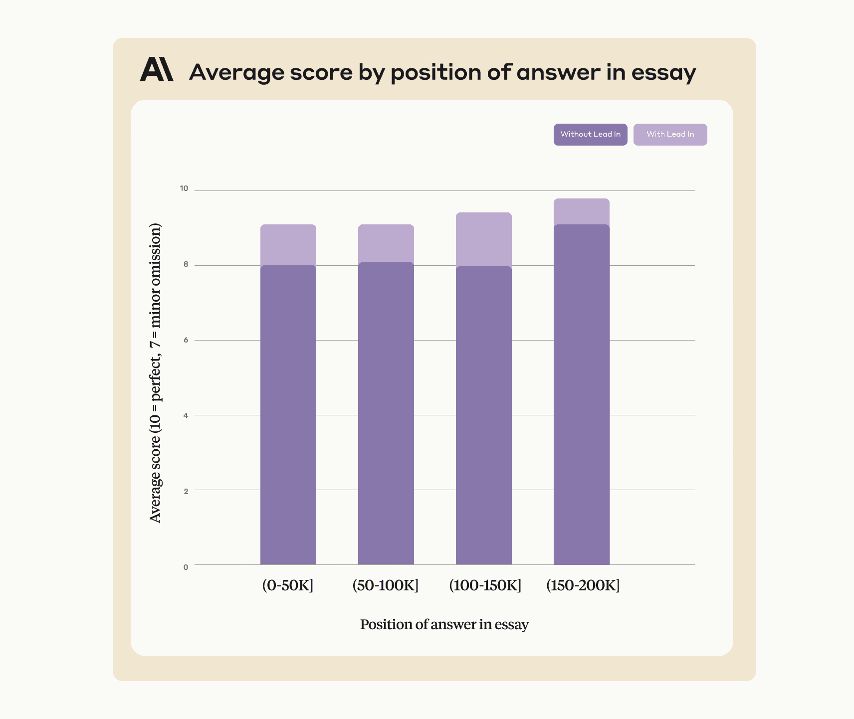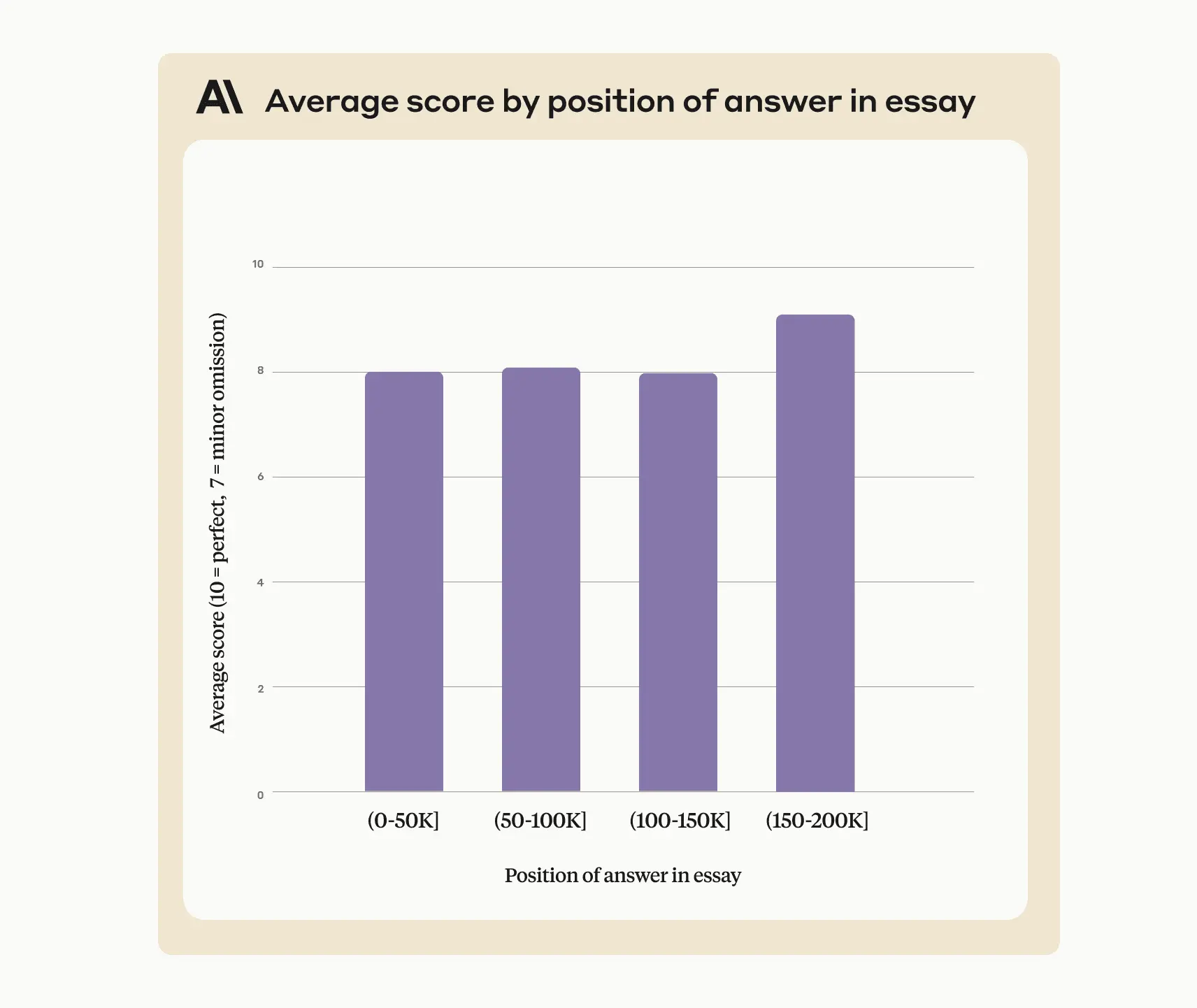 We randomized the order of the essays in the context so this essay appeared at different points in the 200K context window, and asked Claude 2.1:
