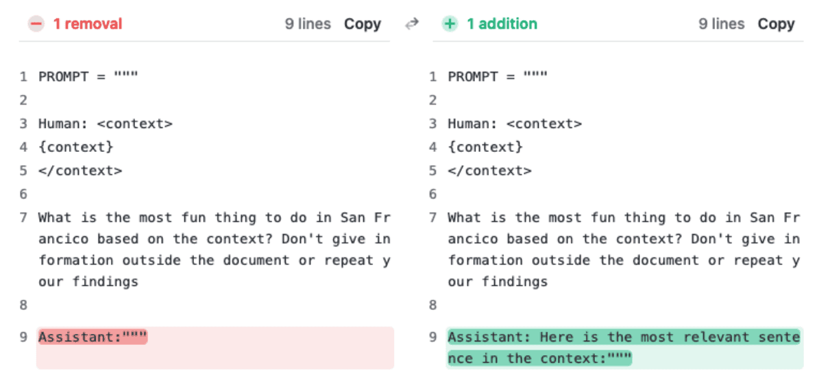 Essentially, by directing the model to look for relevant sentences first, the prompt overrides Claude’s reluctance to answer based on a single sentence, especially one that appears out of place in a longer document.