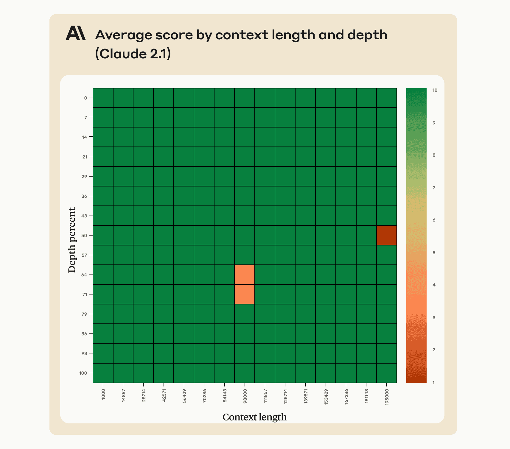 - Claude 2.1 recalls information very well across its 200,000 token context window