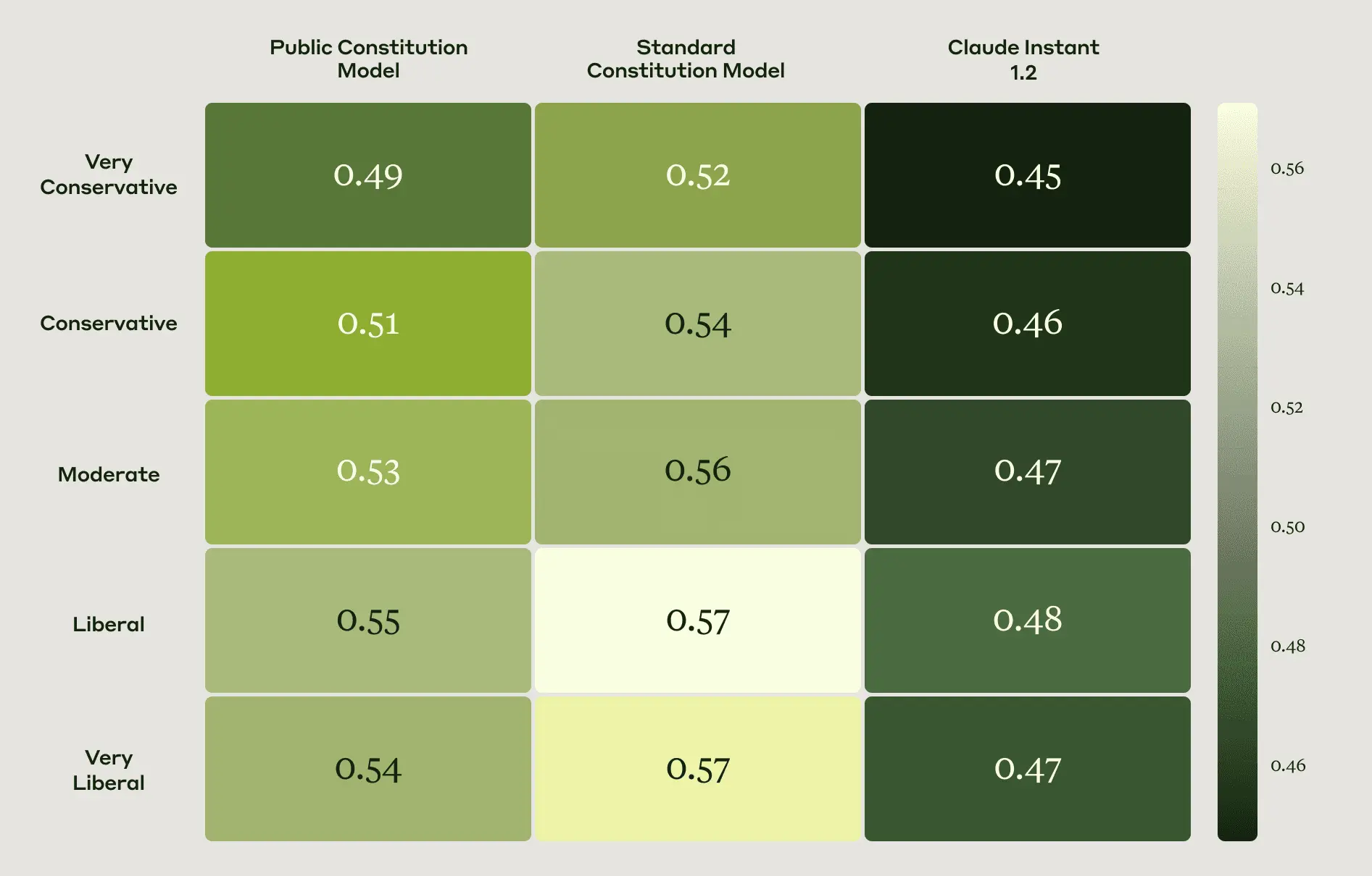 - The Public and Standard models reflect similar political ideologies as one another according to the OpinionQA evaluation (Figure 4).